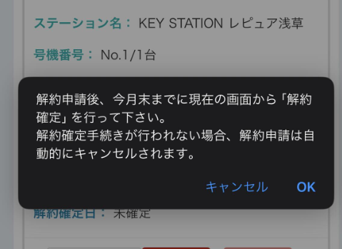 解約申請をタップして注意事項を確認の上、解約確定まで行ってください。